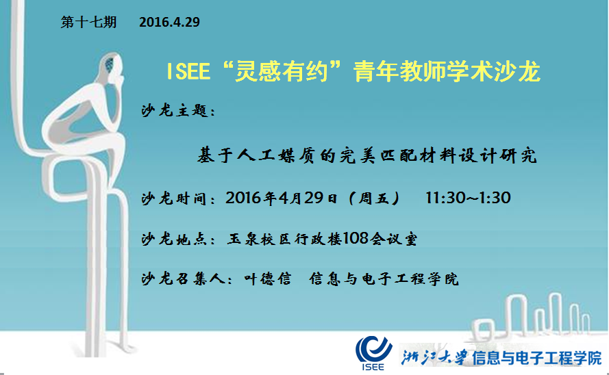 关于ISEE“灵感有约”青年教师学术沙龙(第十七期2016.4.29)的通知