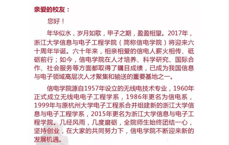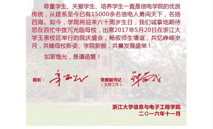 浙江大学信息与电子工程学院六十周年庆典大会邀请函