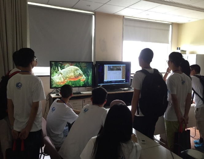 7月2日上午10:00,夏令营活动正式开始。营员们参观了信通系各个实验室,讲解员首先介绍了实验室的研究方向,然后向营员们展示了实验室的成果,以及前沿技术,并让大家身临其境的体验了一下”高科技”。展示的内容丰富多样,涉及视频演示、VR头盔体验、图像处理、电路等方面。
