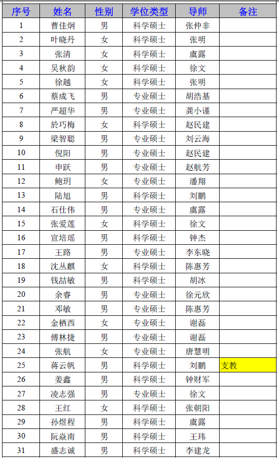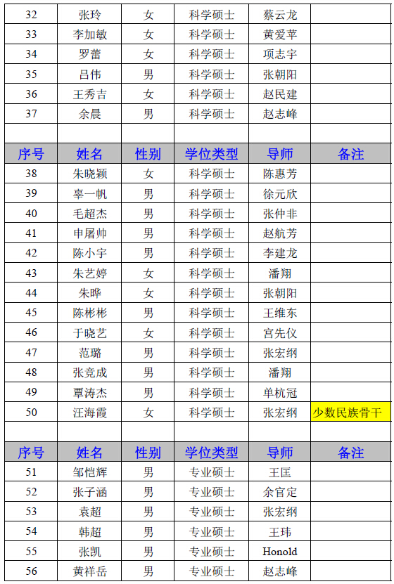 2015级信通所录取研究生名单