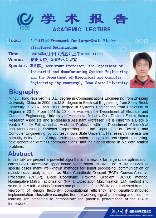 关于美国爱荷华州立大学洪明毅教授学术报告的通知