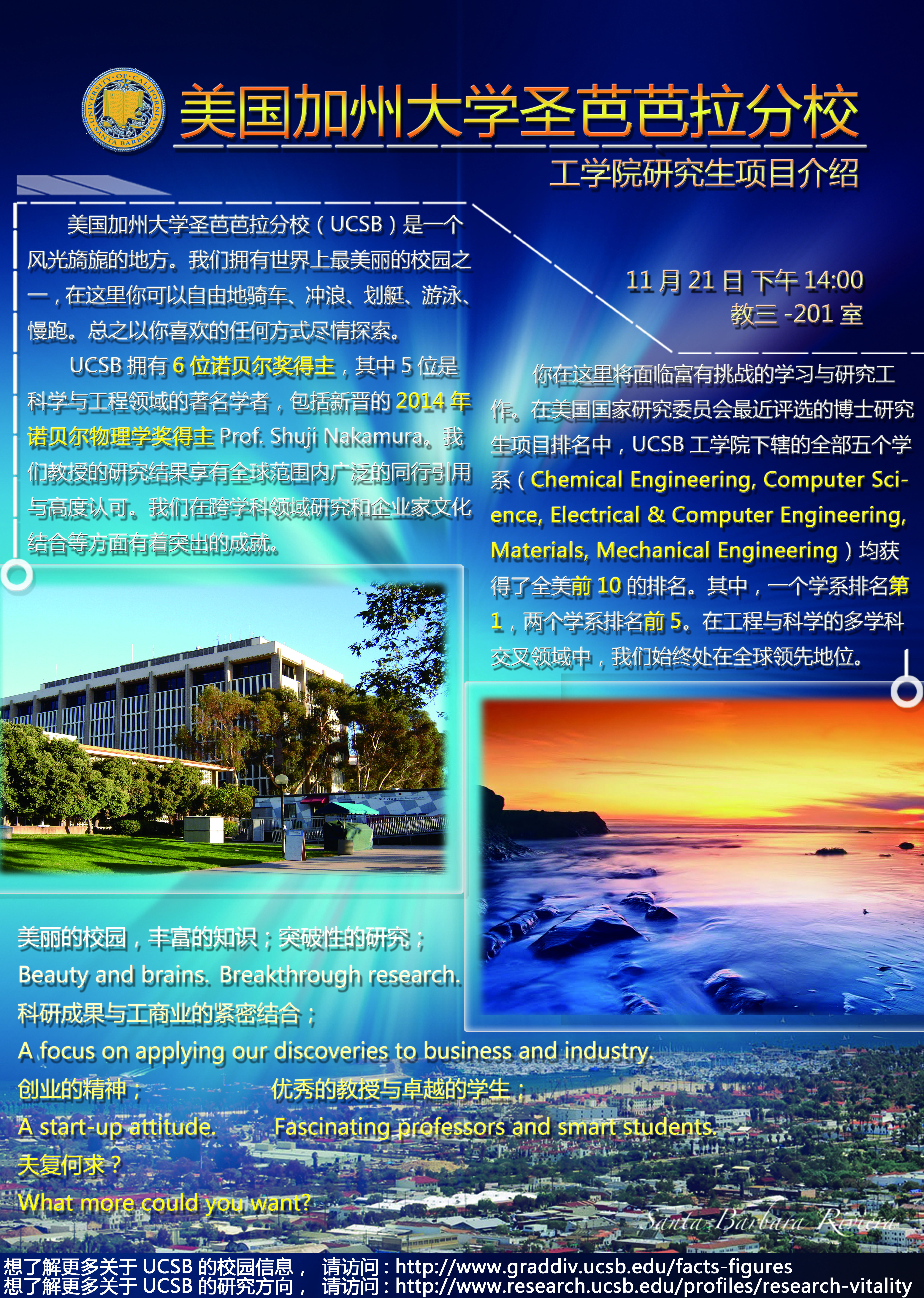 - · 美国加州大学圣芭芭拉分校(UCSB)研究生招生宣讲会 11-13