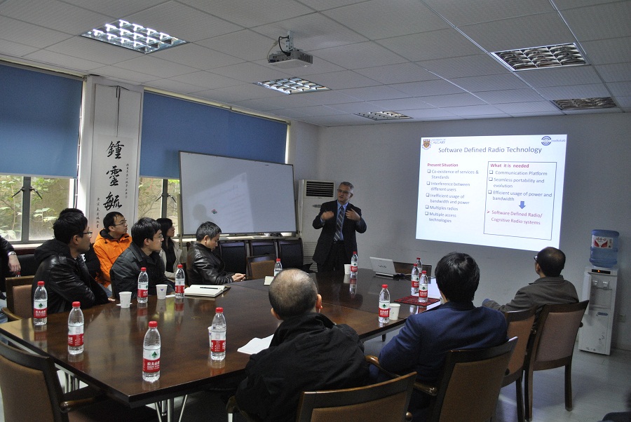 2012年11月29日下午,加拿大工程学院院士Fadhel M. Ghannouchi教授应邀到浙江大学信电系作学术报告。此次学术报告由王浩刚副教授主持,报告主题为“Power amplifiers and Transmitters for Software Defined Radio Systems”。与Ghannouchi教授一同出席的还有宁波大学特聘教授刘太君教授,电子信息技术与系统研究所常务副所长金晓峰教授、杜阳教授、皇甫江涛副教授和潘赟副教授,及其他所的众多学生参加了报告会。