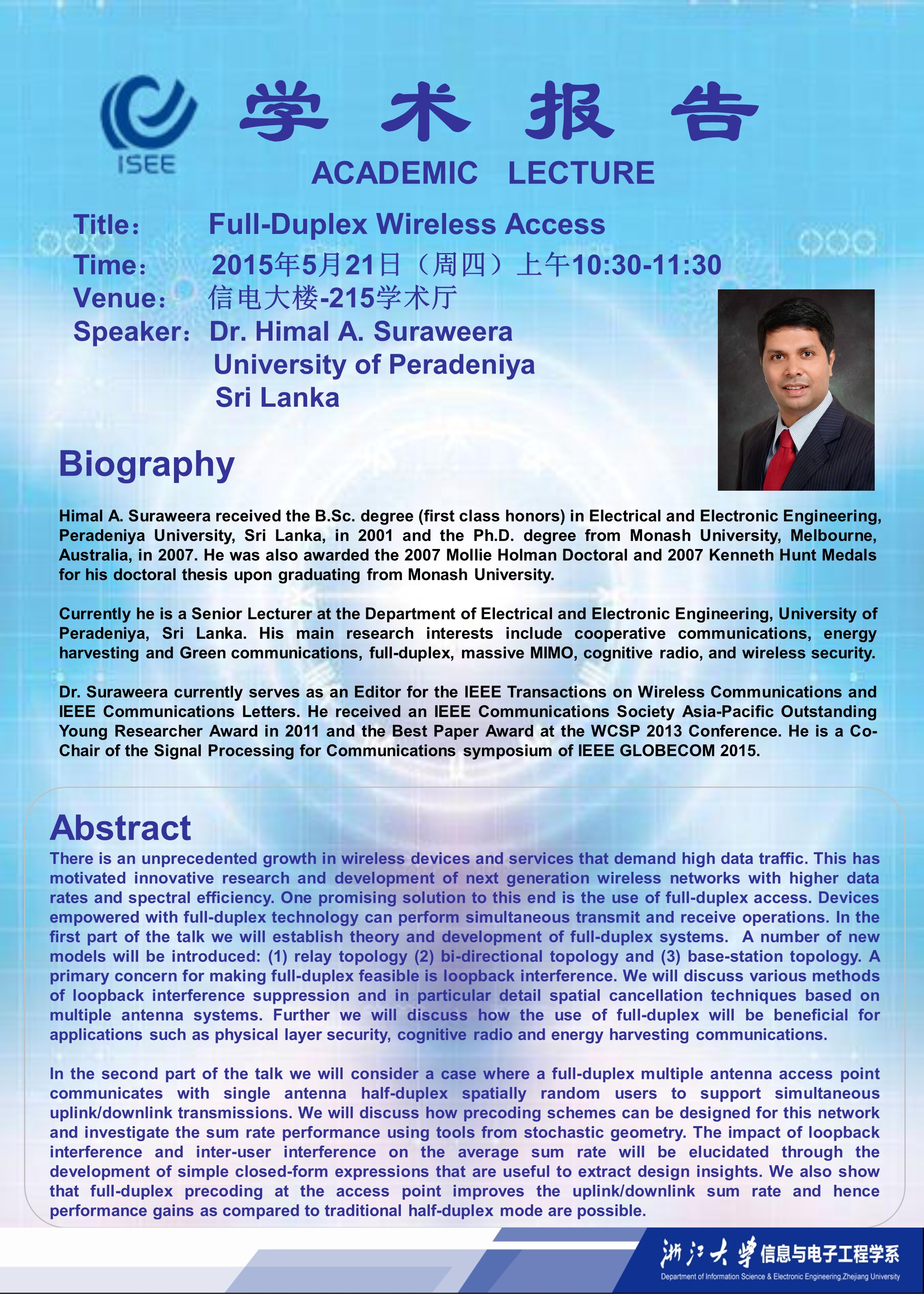 关于斯里兰卡佩拉德尼亚大学Himal A. Suraweera博士学术报告的通知