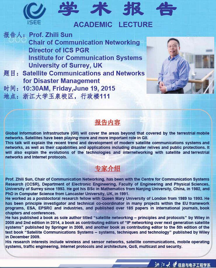 关于英国萨里大学Zhili Sun教授学术报告的通知