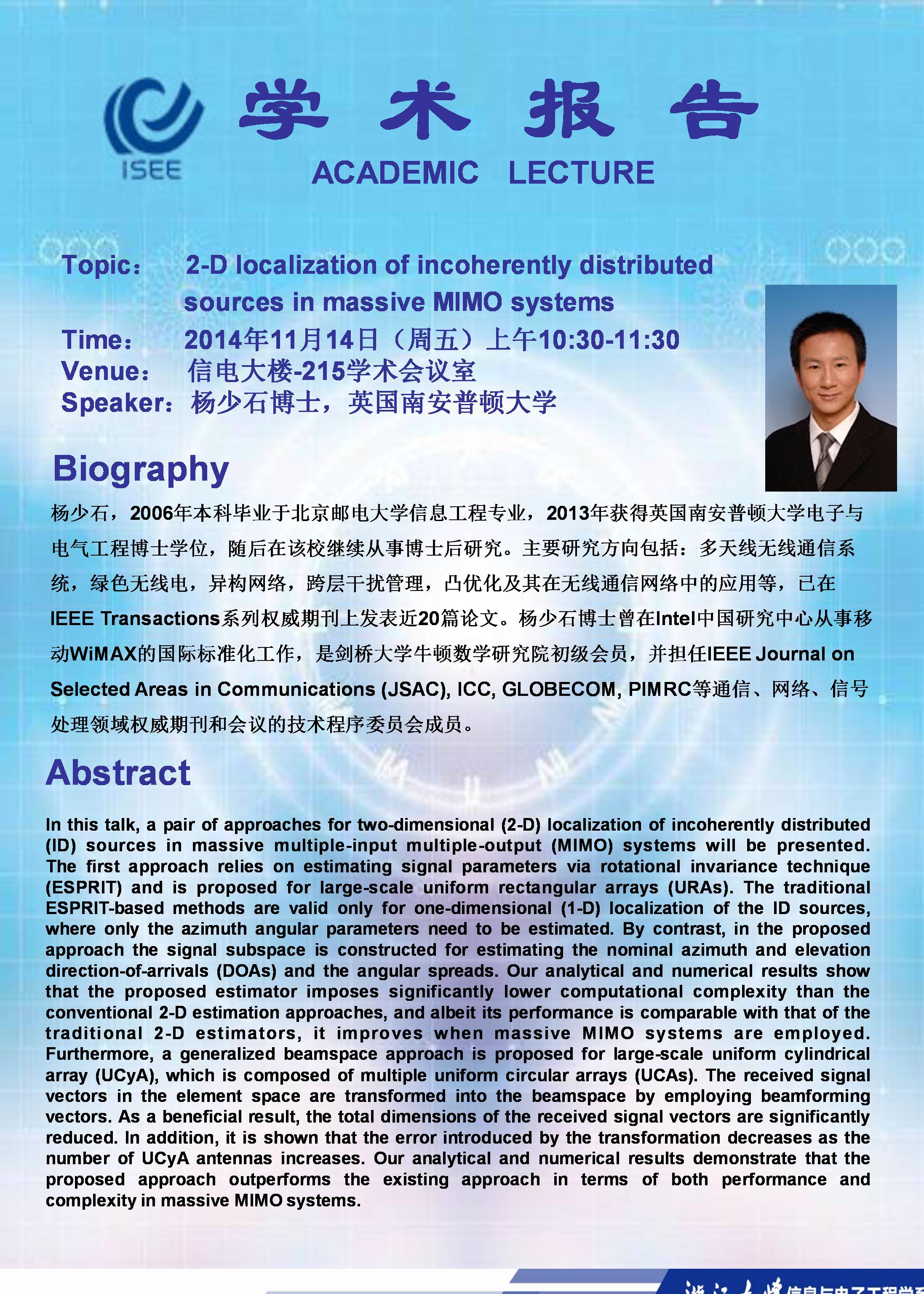 关于英国南安普顿大学杨少石博士学术报告的通知