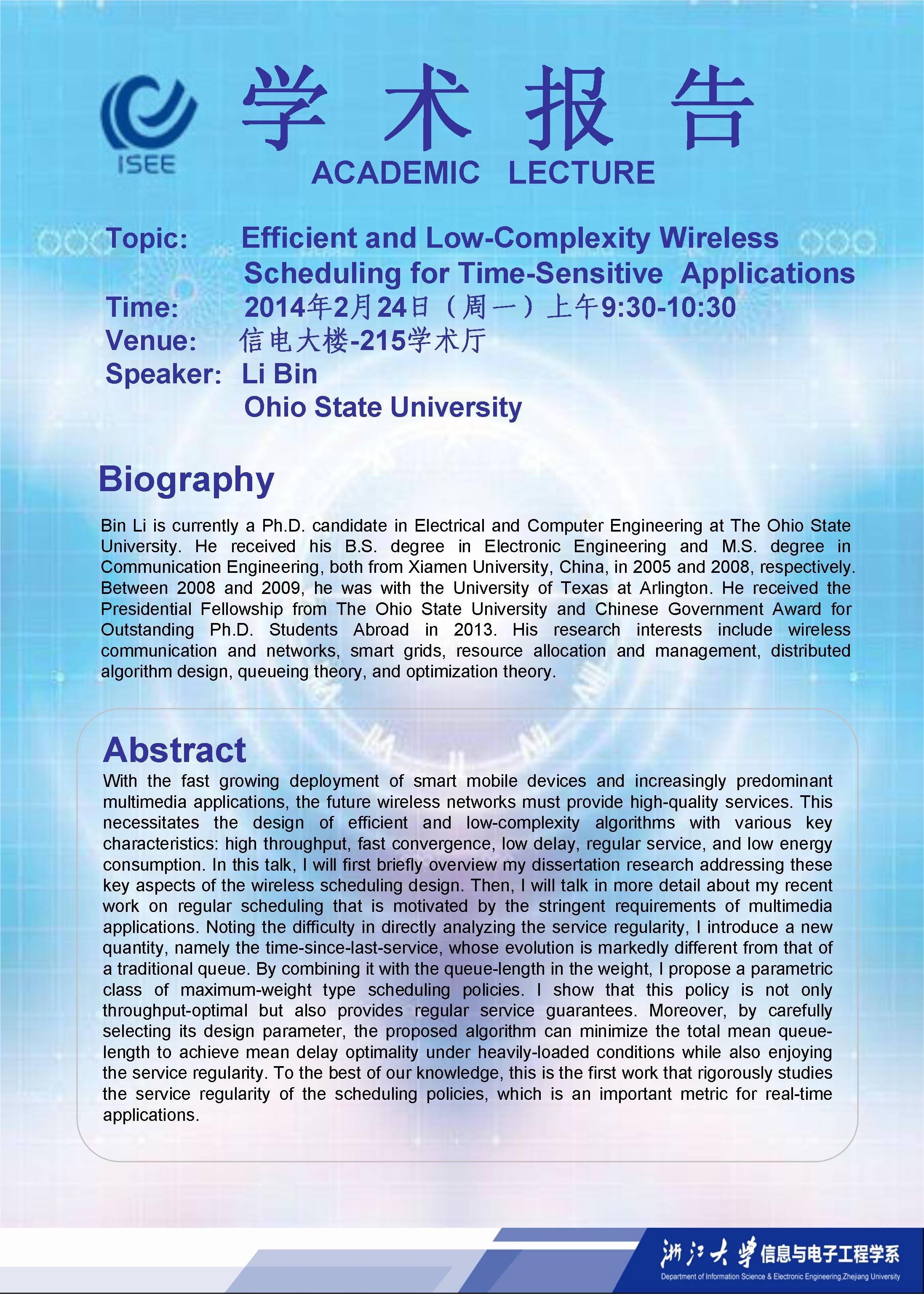 关于俄亥俄州立大学李宾博士学术报告的通知