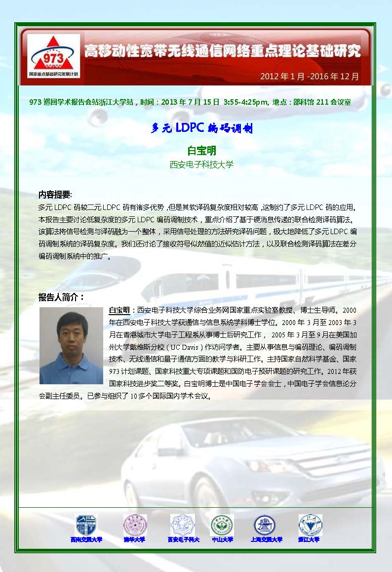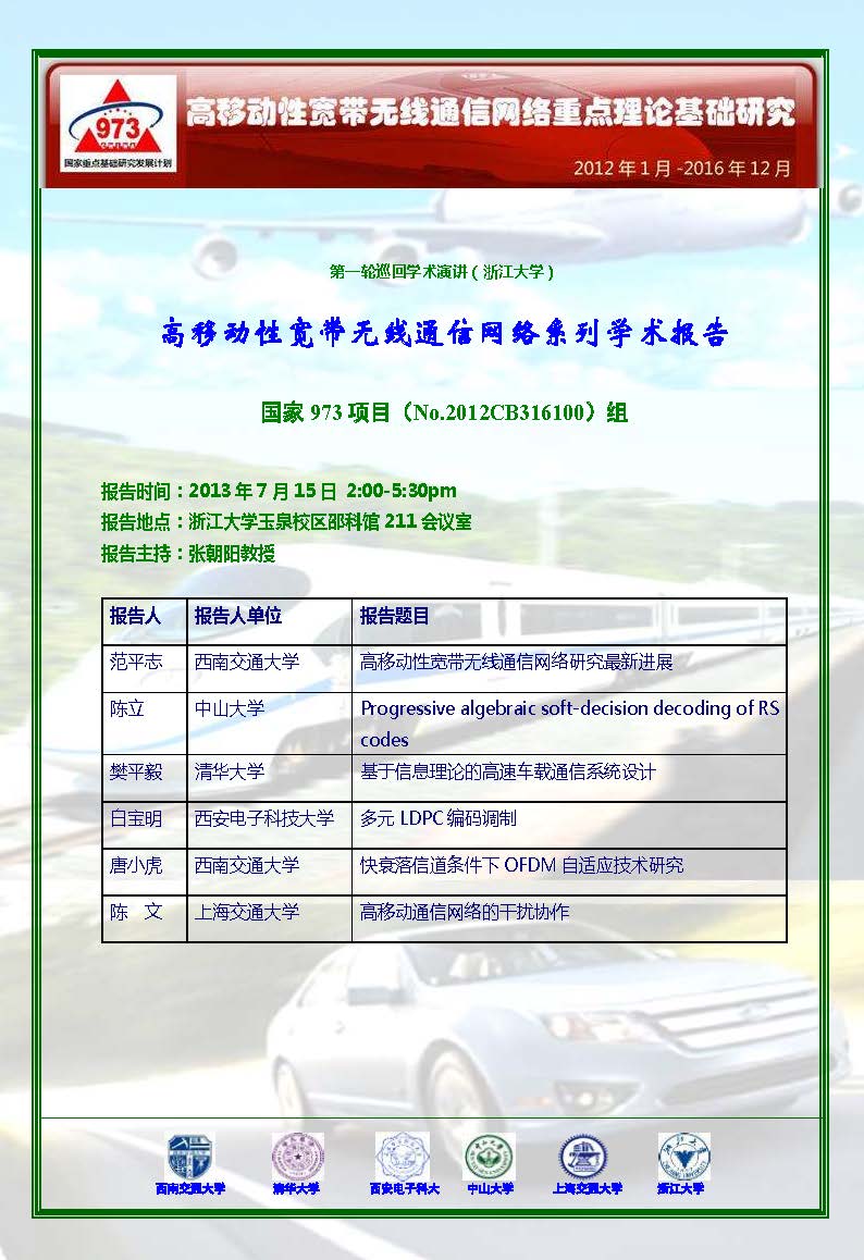 国家973项目“高移动性宽带无线通信网络”巡回学术报告会