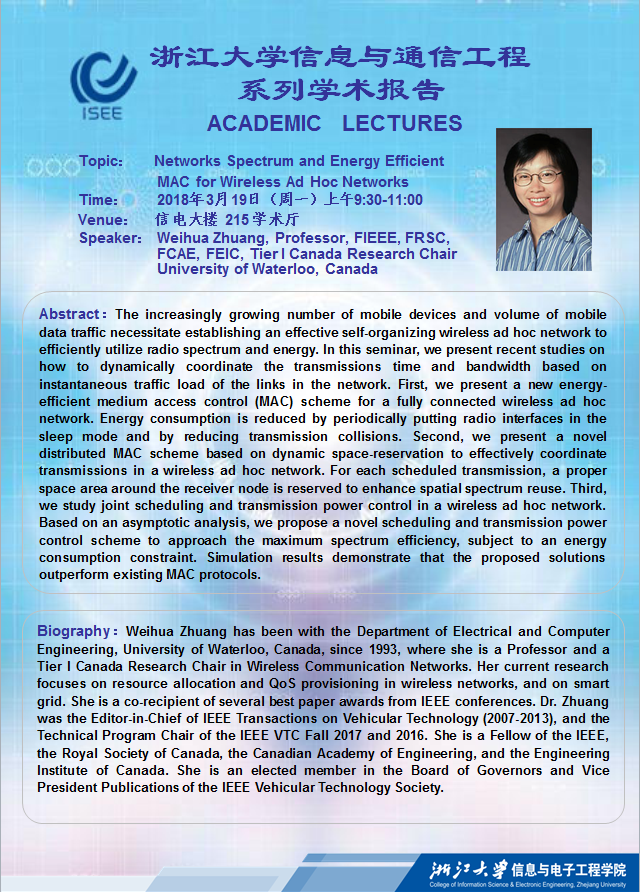 关于加拿大滑铁卢大学庄卫华院士学术报告的通知