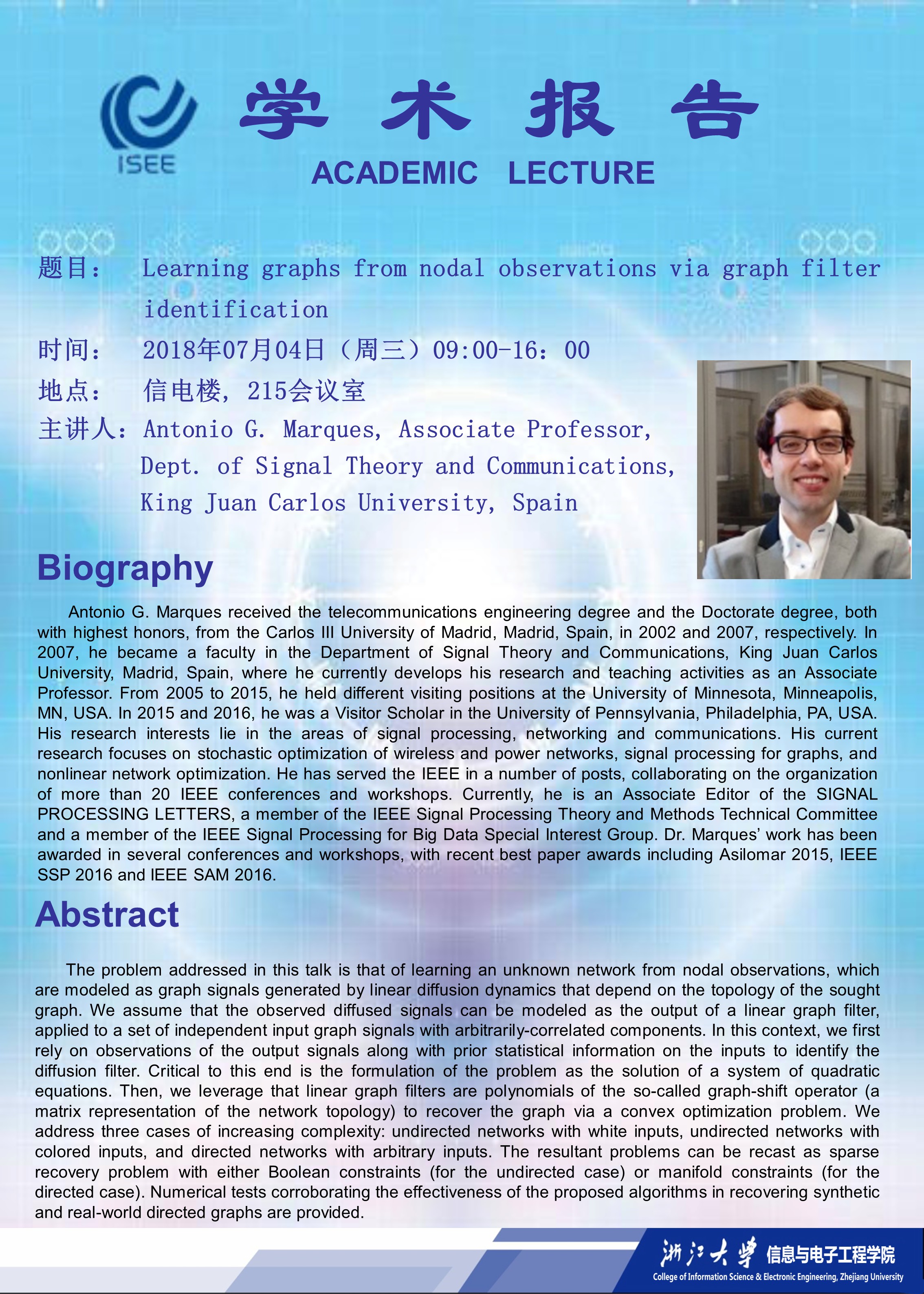 关于胡安卡洛斯国王大学Prof. Antonio G. Marques学术报告的通知